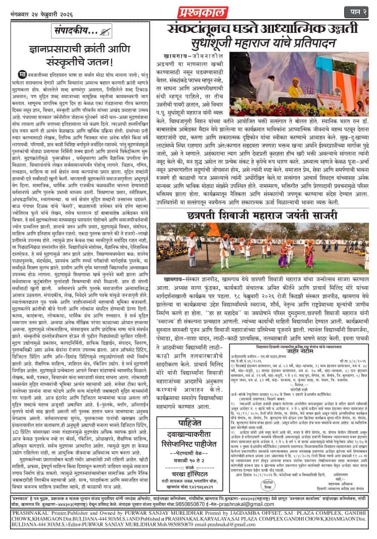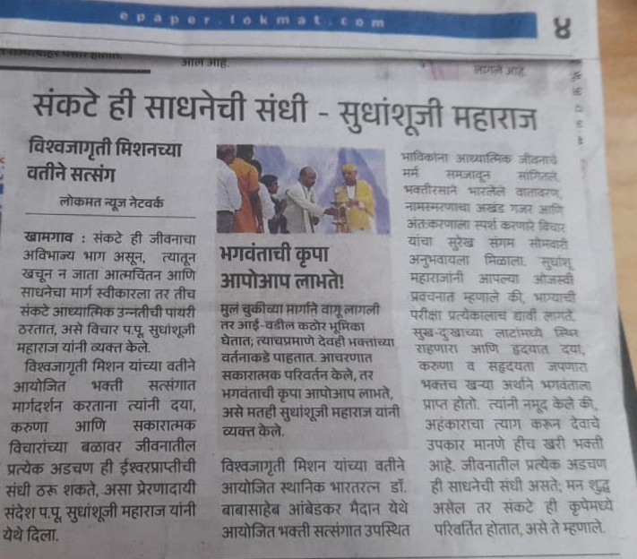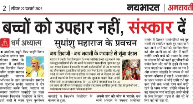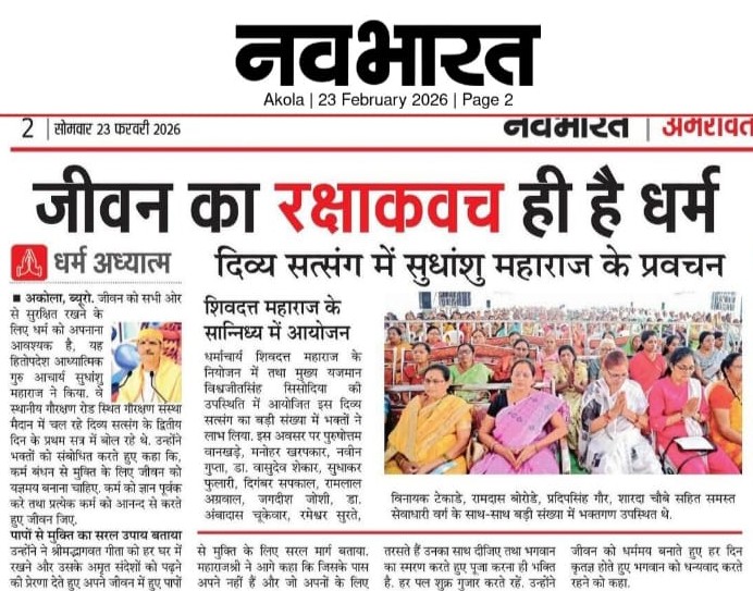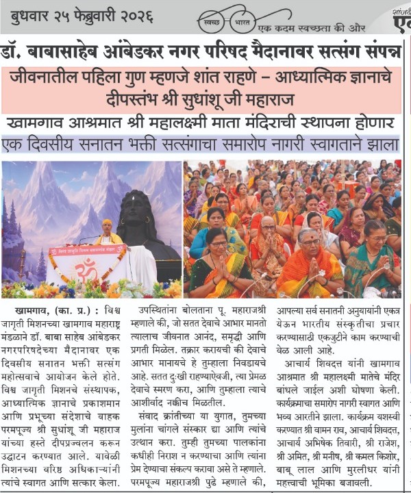 At a grand event held in Khamgaon, His Holiness Sudhanshu Ji Maharaj captivated the audience, especially the younger generation, with his inspiring words. He emphasized discipline, the importance of time, values, and self-control as the foundations of success. Maharaj Ji said that if young people channel their thoughts and conduct positively, they can not only shape their future but also play an important role in building society and the nation. A large number of devotees attended the program, and everyone pledged to implement his messages in their lives.