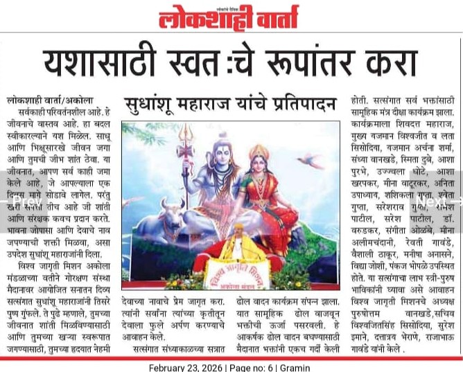 Renowned spiritual guru Pt. Sudhanshu Maharaj stated in his discourse that achieving success in life requires first transforming oneself. He explained that before changing external circumstances, we must improve our thinking, behavior, and attitude. A large number of devotees attended the Mantra Deeksha Sanskar program. Maharaj described self-confidence, positivity, and discipline as the keys to success. According to him, only when a person improves within himself is lasting progress possible. The atmosphere of the program was devotional and inspiring.